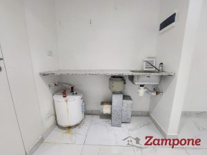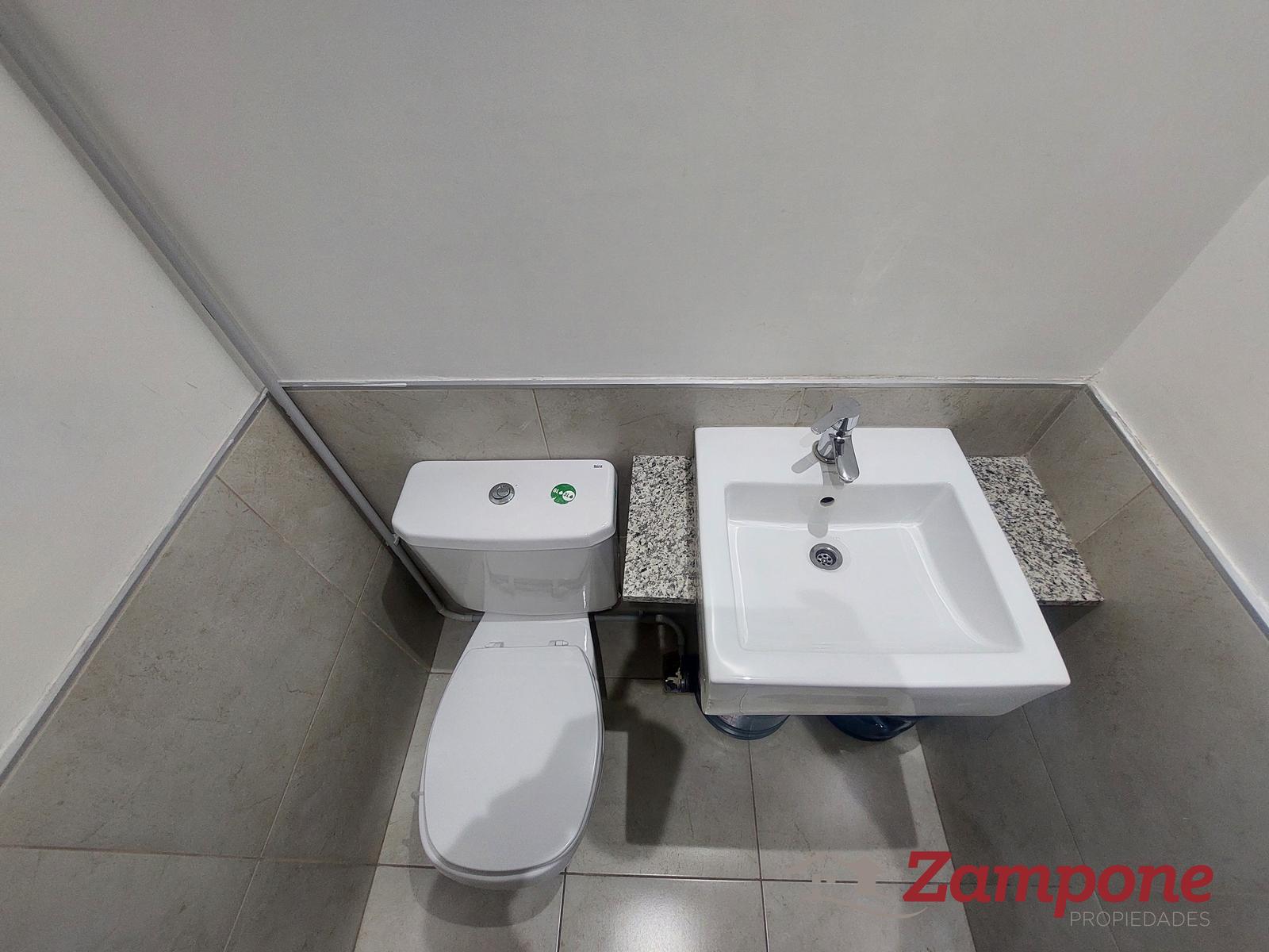 El ambiente cuenta con pisos de porcelanato, que aportan un toque moderno y elegante, y una cocina incorporada equipada con bacha y grifería monocomando.