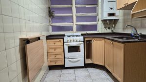 Balcón, al contrafrente de 1×2 50. Living comedor de 6×3. Cocina con muebles completos, espacio para lavarropas. Baño completo. Dormitorio con placard.